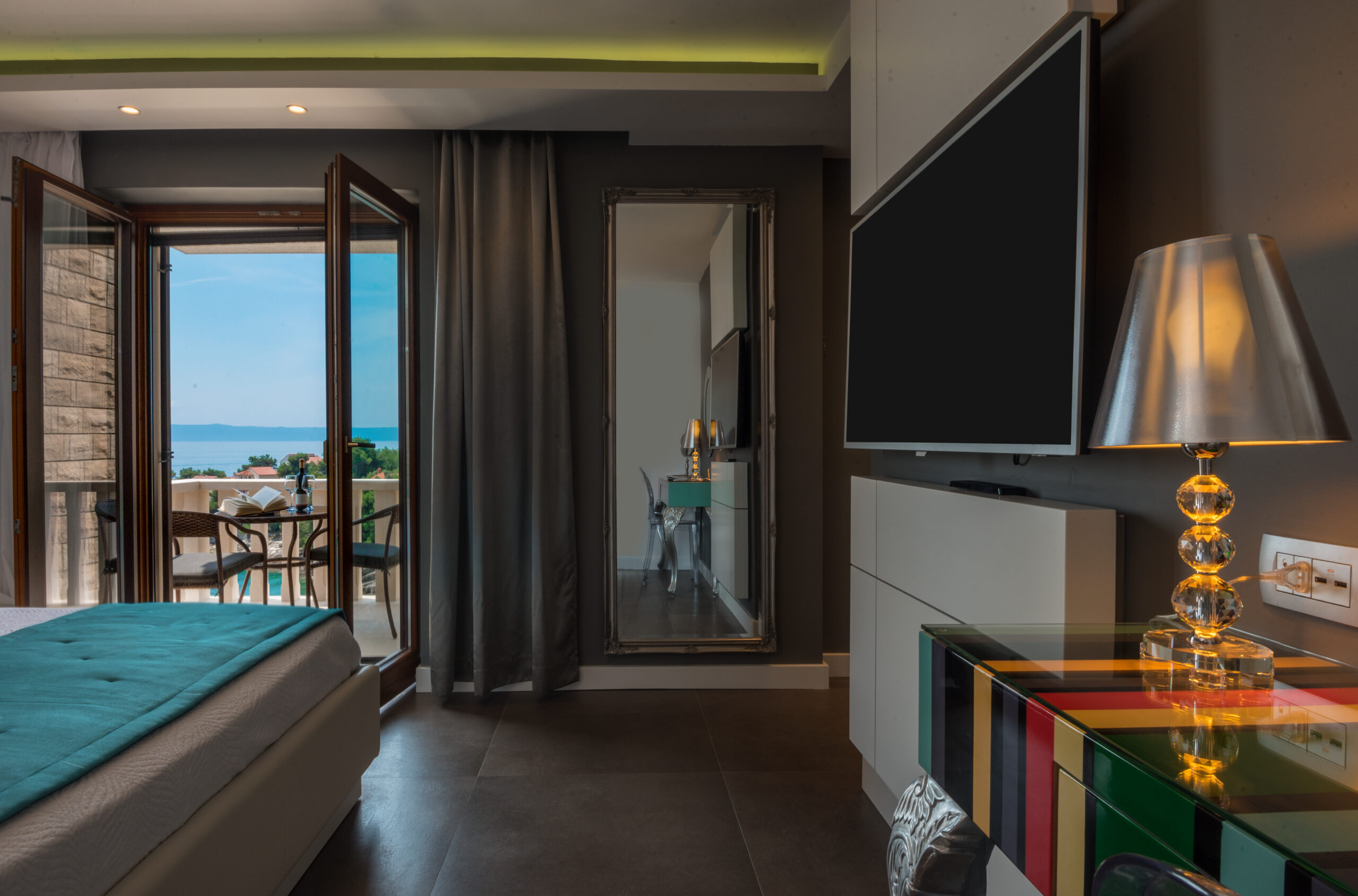 The heart of the villa is its expansive terrace, complete with a private heated pool, luxury loungers, and serene garden areas ideal for reading, relaxing, or simply soaking in the surrounding peace. Whether you’re enjoying your morning coffee with a sea breeze or toasting to the sunset, every moment at Villa GodiStar feels effortlessly special.