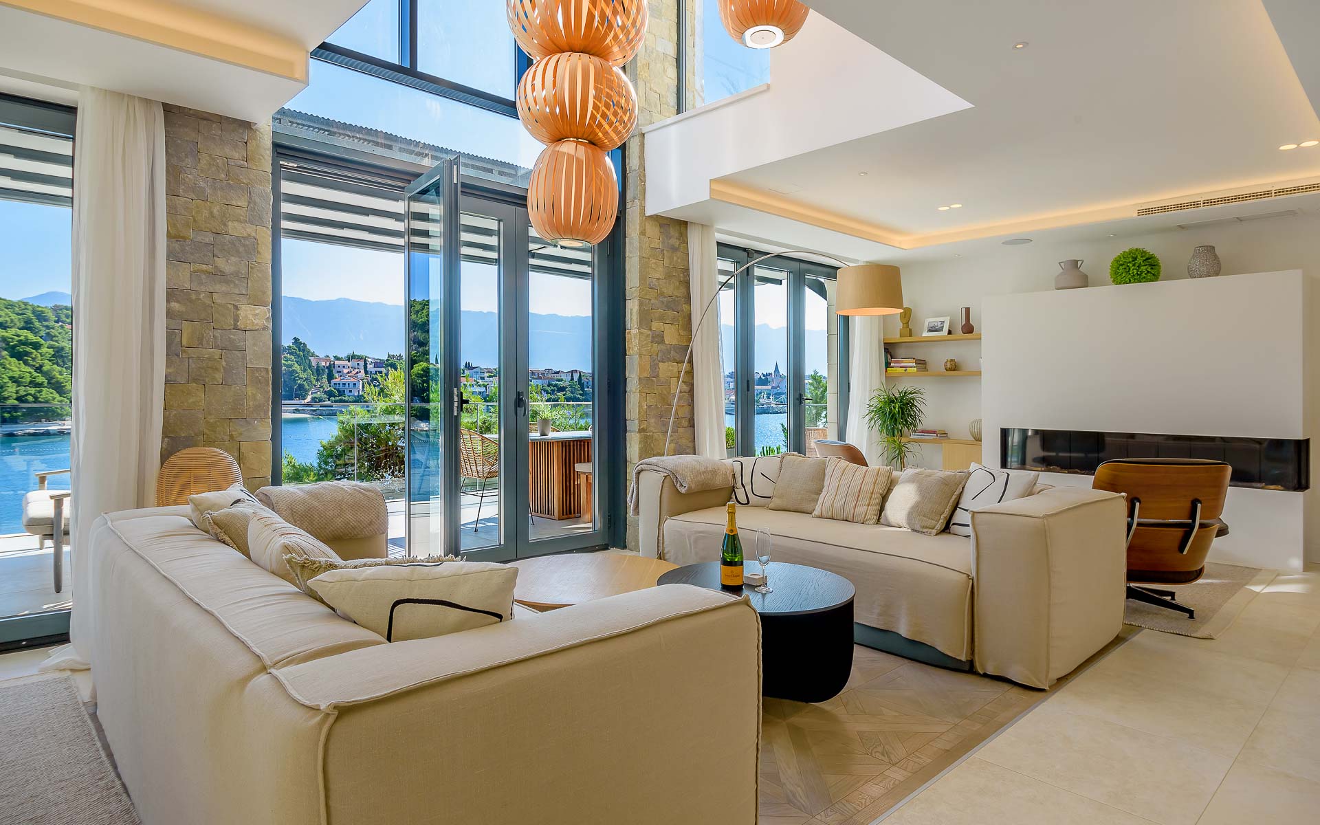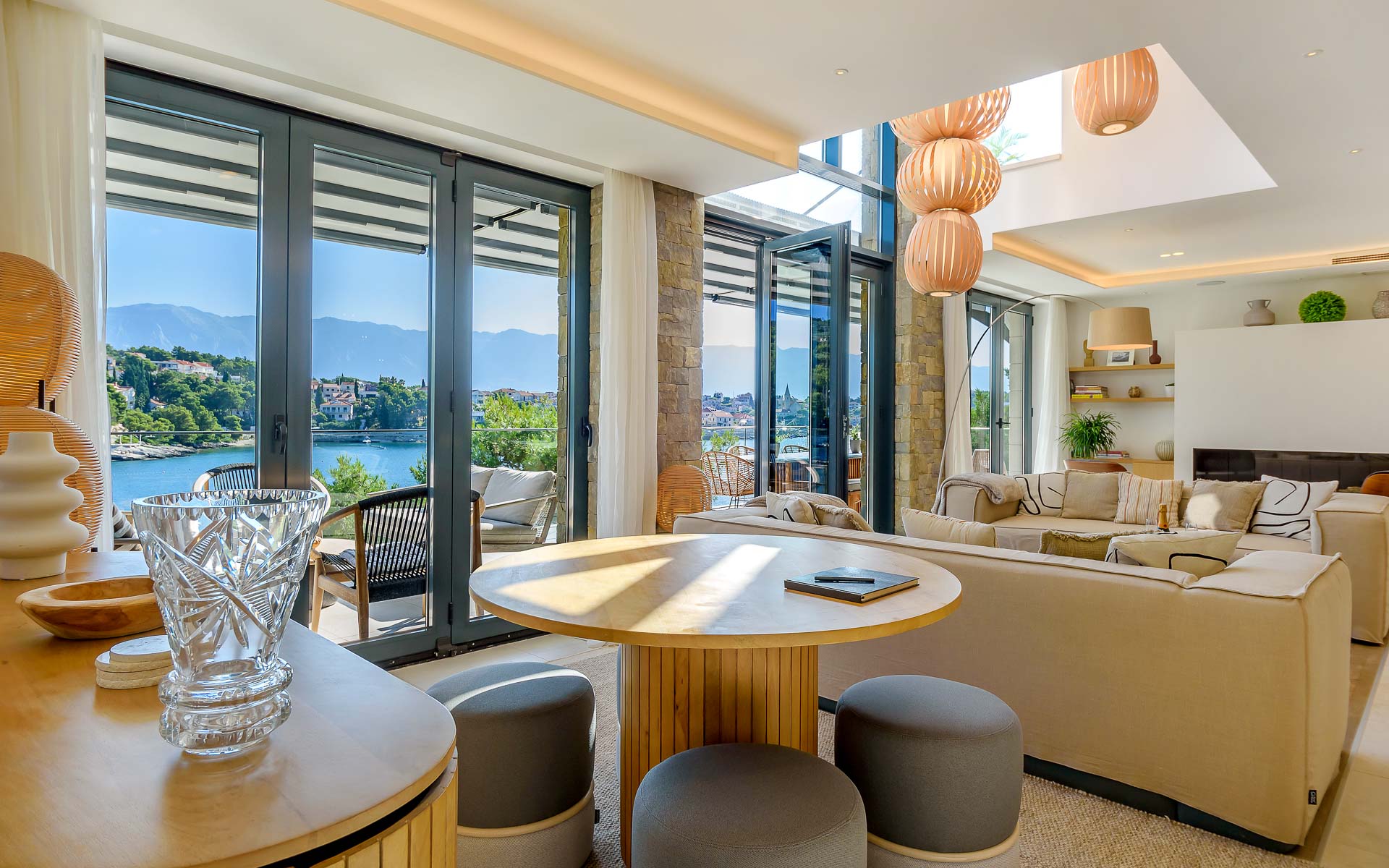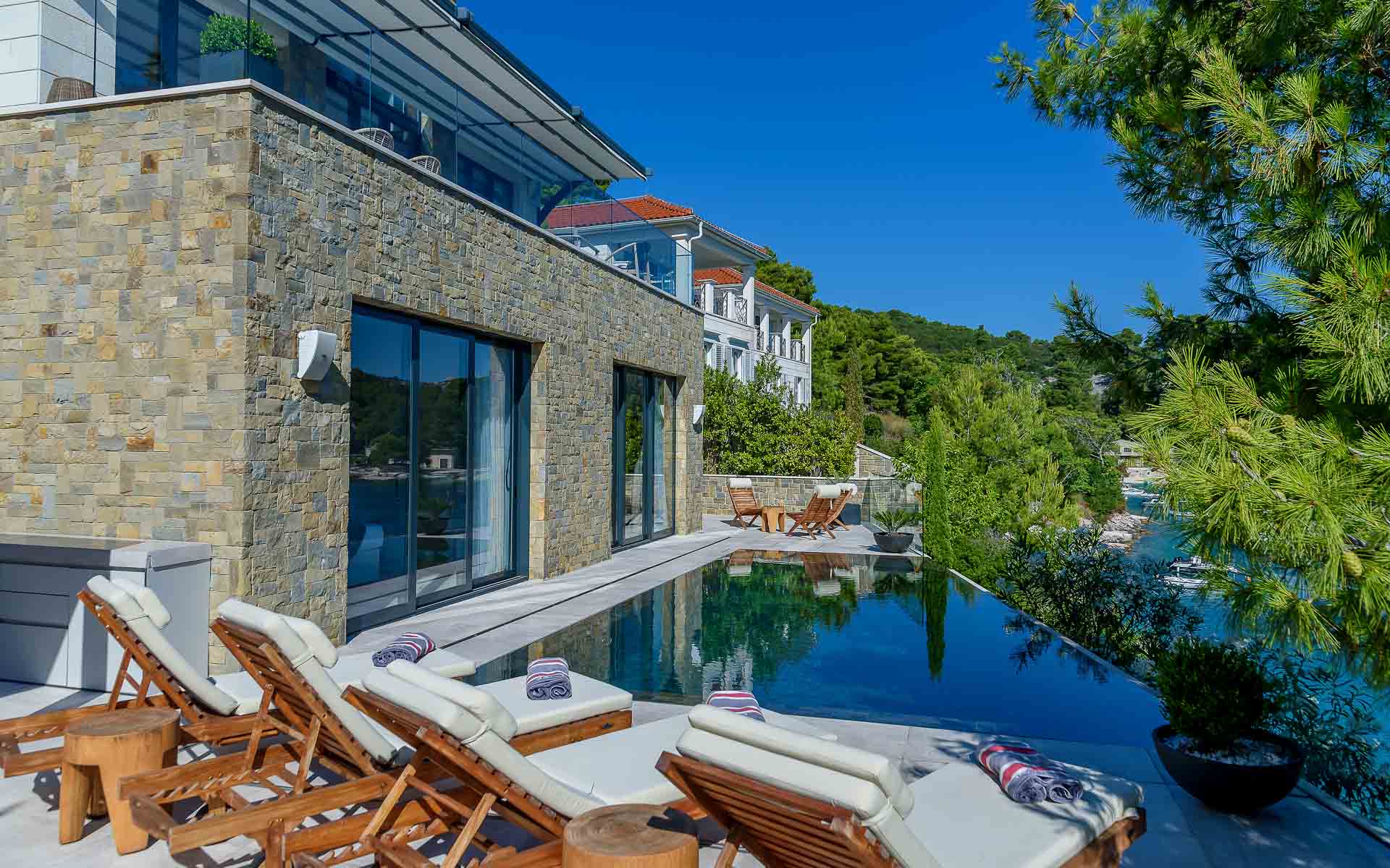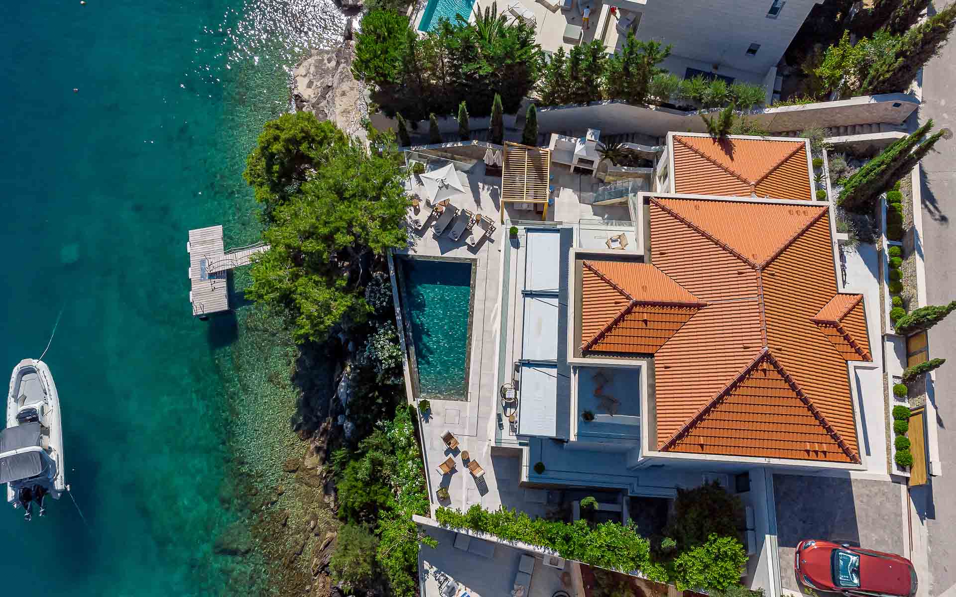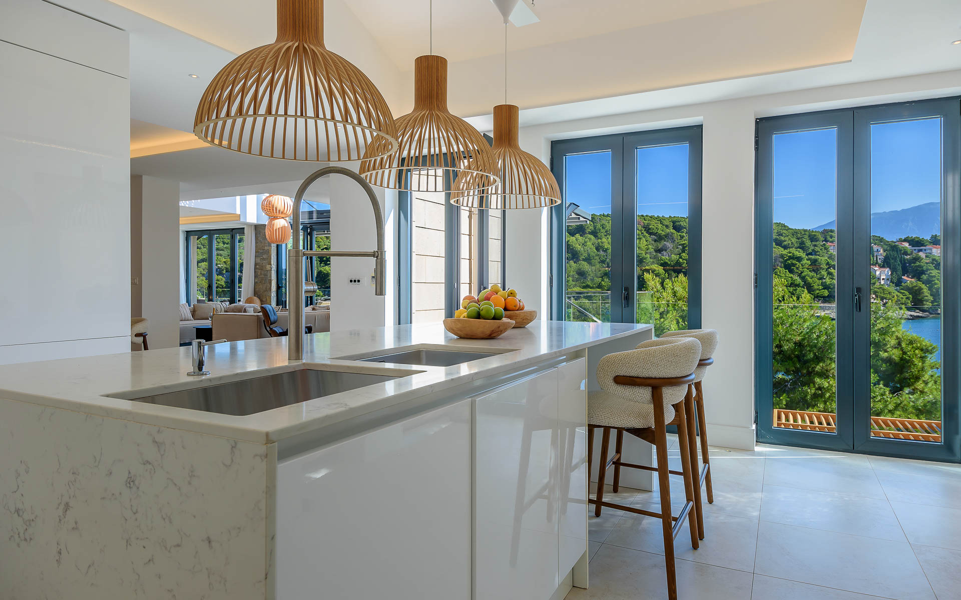 Villa Ivy is a spectacular beachfront property ingeniously designed directly on the water’s edge. Newly constructed on three levels the villa is an outstanding example of modern Dalmatian architecture. The house is luxurious and elegant and was created using the best of everything, from the dramatic Totem chandeliers and Foscarini mood lighting to the finest stone sinks, beautiful fabrics, and contemporary furnishings.