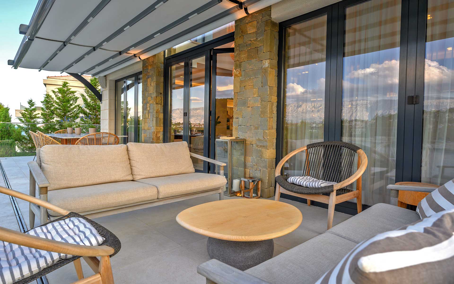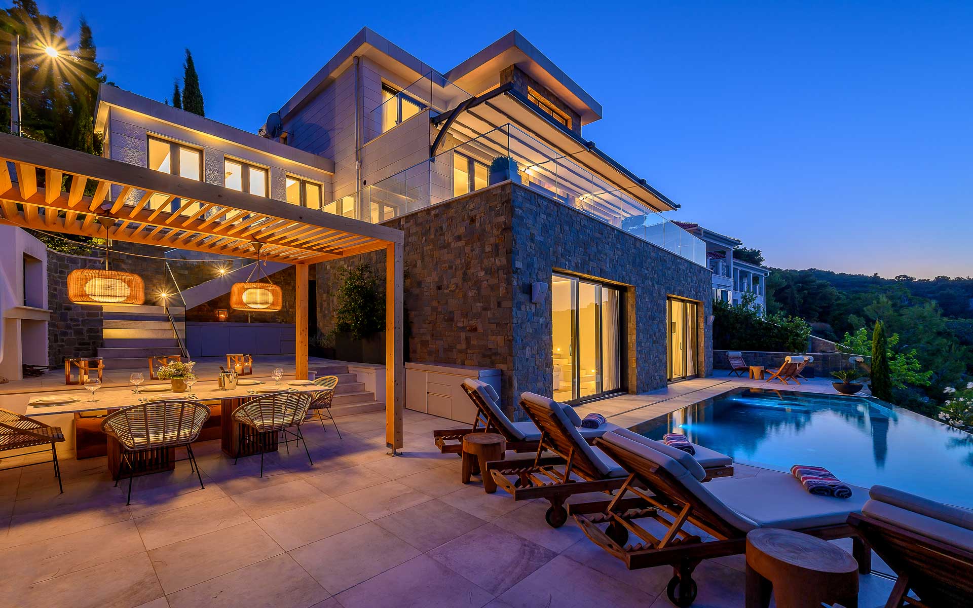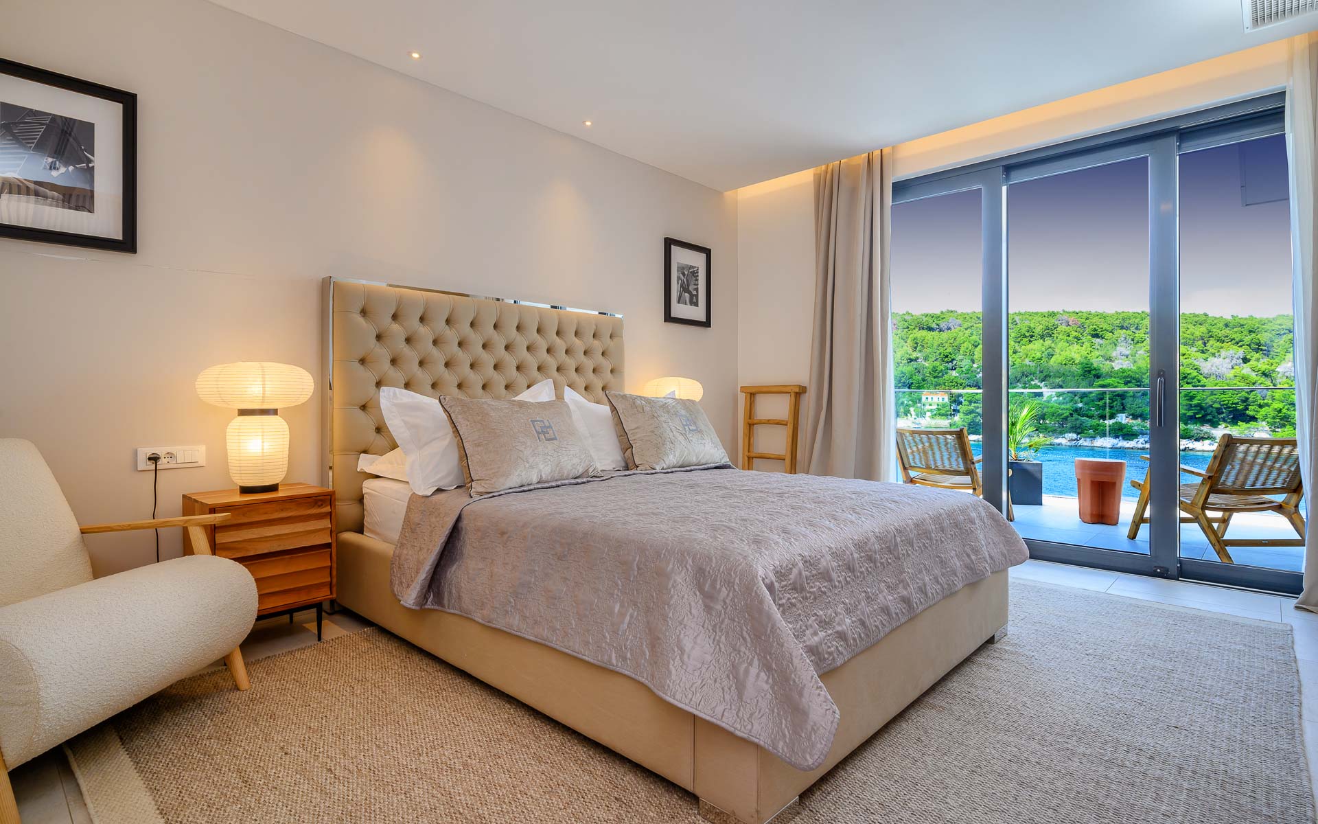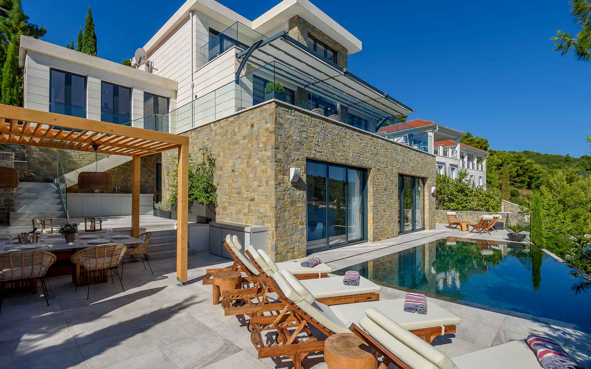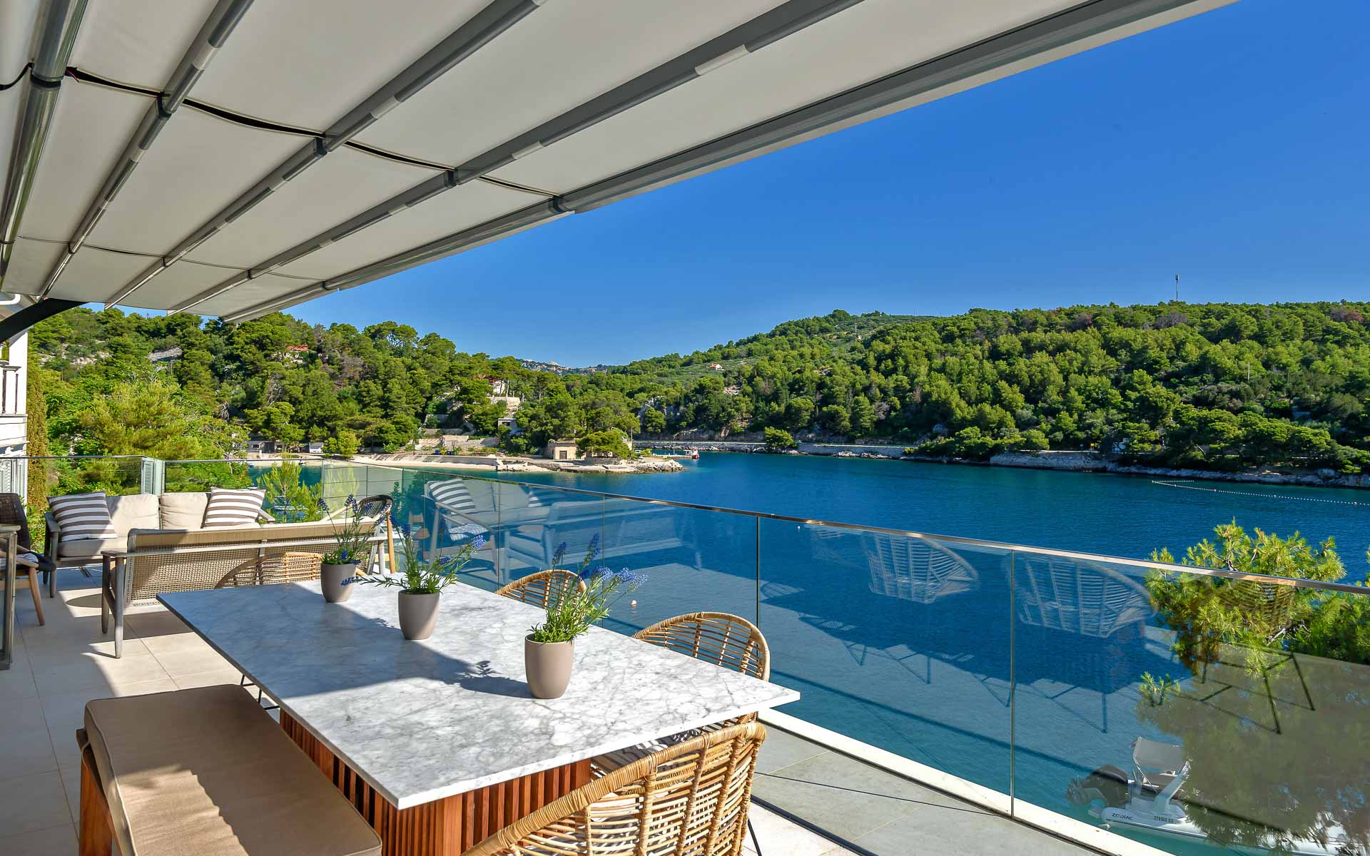 Villa Ivy is a spectacular beachfront property ingeniously designed directly on the water’s edge. Newly constructed on three levels the villa is an outstanding example of modern Dalmatian architecture. The house is luxurious and elegant and was created using the best of everything, from the dramatic Totem chandeliers and Foscarini mood lighting to the finest stone sinks, beautiful fabrics, and contemporary furnishings.