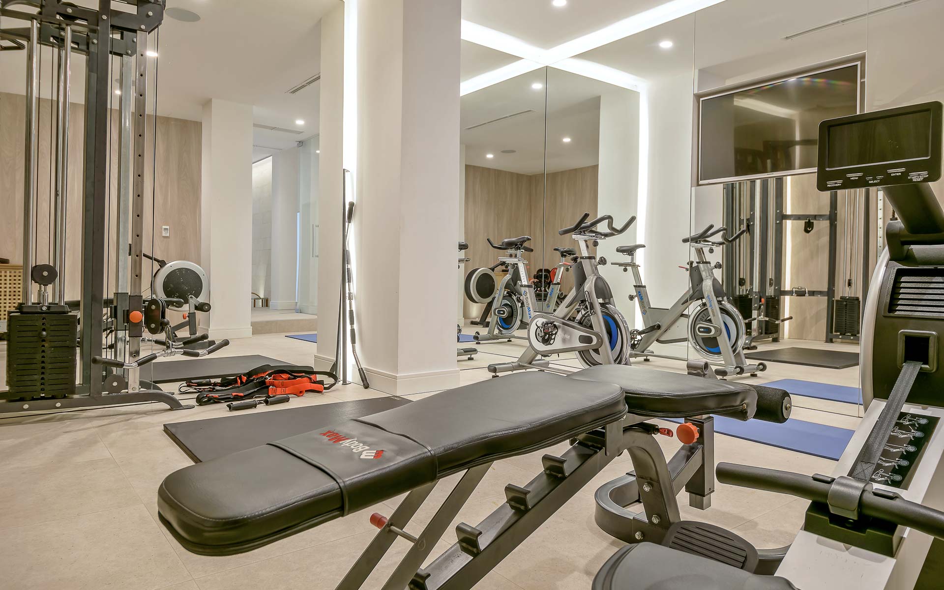 Ground Floor – Two further en-suite bedrooms with patio doors leading out on to the main terrace giving panoramic sea views over the pool. Both rooms have large king-size beds which can be made into twin single beds. A self-contained spa with a sauna, steam room, and gym can also be found on this level.