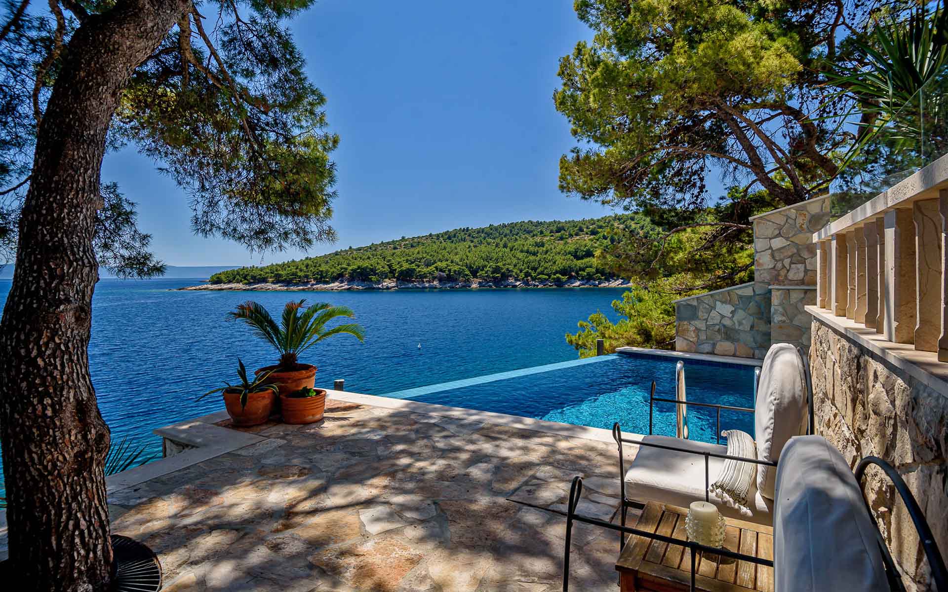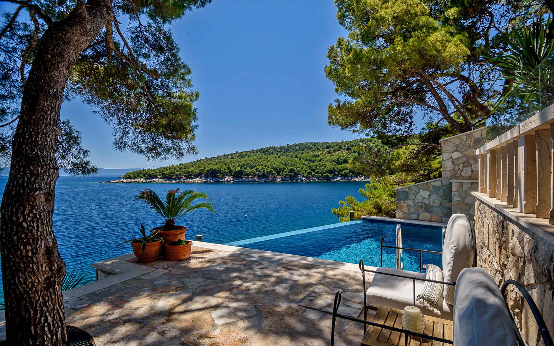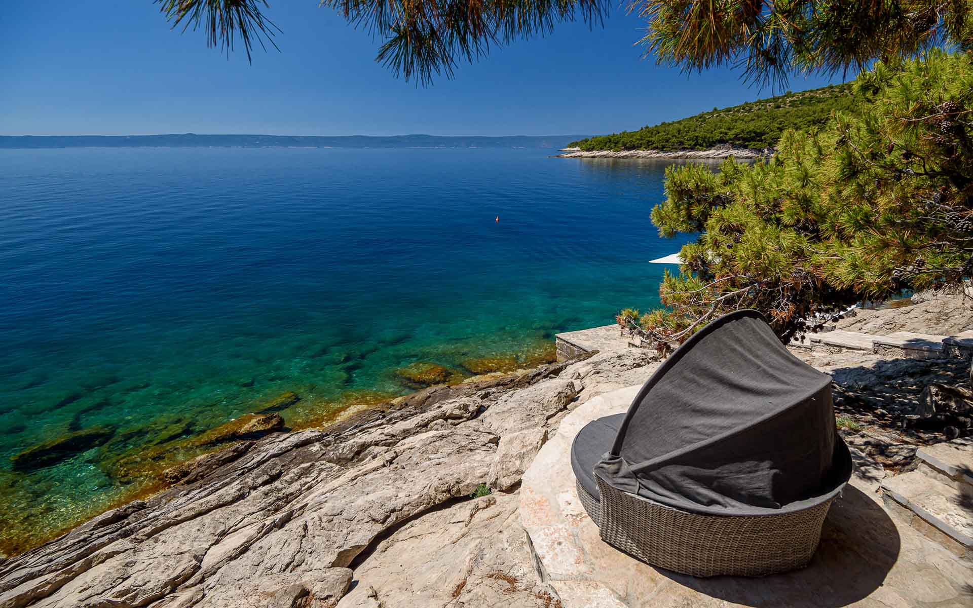 A luxurious seafront villa crafted from iconic Brač stone, Villa Rosemarine offers privacy, elegance, and direct access to the Adriatic. Nestled on a tranquil headland surrounded by pine trees and wild rosemary, this fully staffed retreat is perfect for up to 14 guests seeking a refined coastal escape.